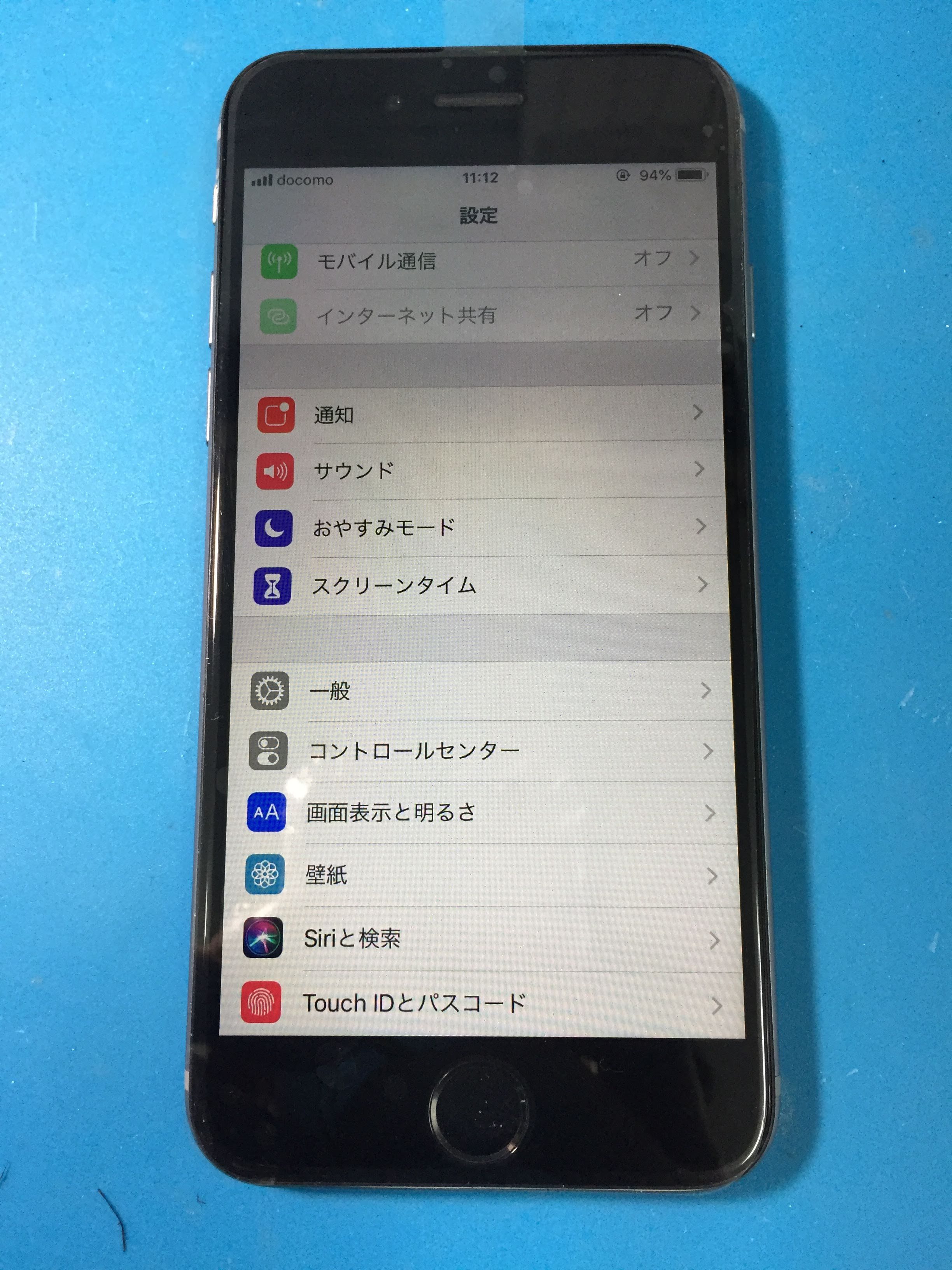 こちらのiPhone6s、見た目はガラスが割れていない状態で何の以上も無いように見えますね。