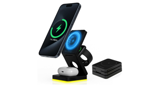 iPhoneを立て掛けて充電しながら動画も見られる便利アイテム。Pro Maxの重量もしっかり支える安定感があり、デスクにも映えるデザインです。