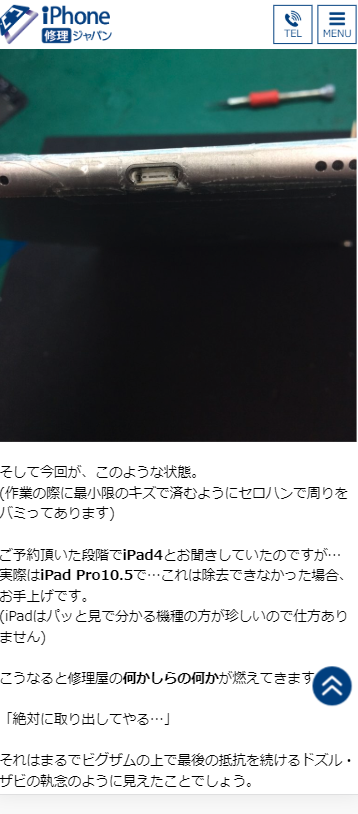 当店でもiPad Pro系はライトニング端子の修理には未対応で…