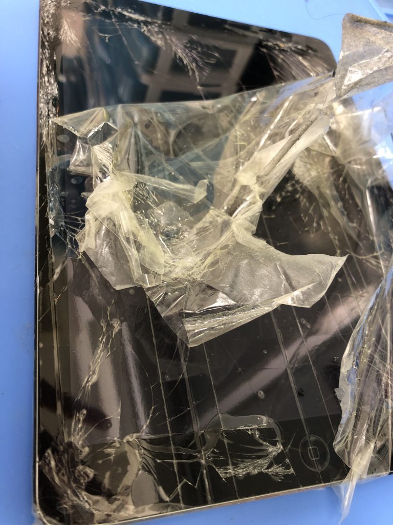 特にiPadは薄いガラスなので破片が出やすく、テープでとめている方が多くいますが、