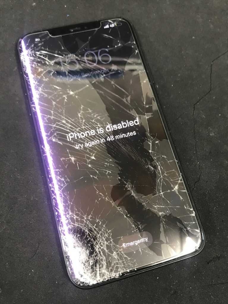 画面のガラスが割れてしまい、それでも表示はそのまま綺麗な状態!幸い強化ガラスやフィルムで割れも覆われているので操作可能、、、かと思いきや、タッチ不可の場合があります。そしてさらに困ったことに、タッチを端末側では認識していて”パスコードの誤タッチ”と判断されてしまっていることがあるのです。