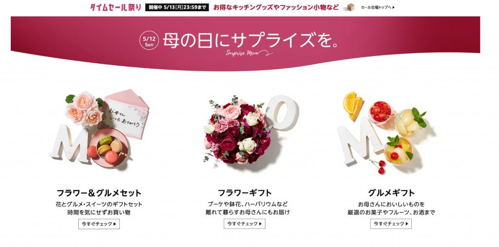 大手通販サイトAmazonでは『母の日特集2019』と称して限定ページが公開されています。