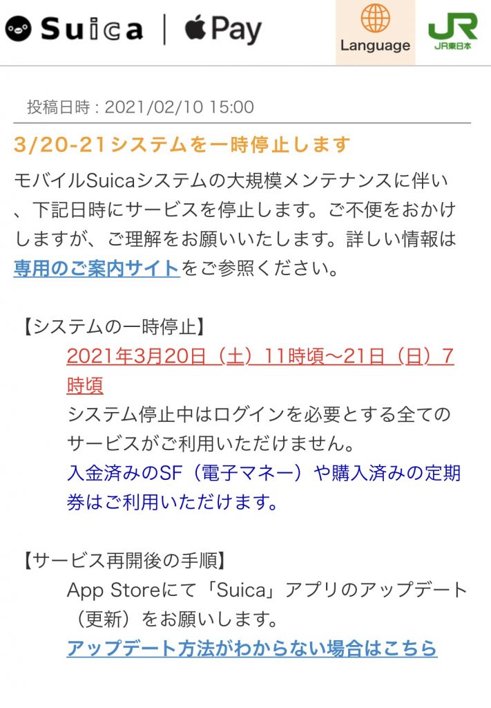 本日2021年3月21日、チャージしようとモバイルスイカを開いたら、いきなりエラー表示+操作不能に陥っておりました。ネット検索して見たらなんと多くのユーザーが使用できなくなっていました。