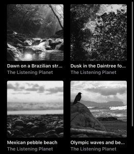 自然の音を収録したサウンドトラックやプレイリストが公開されています。