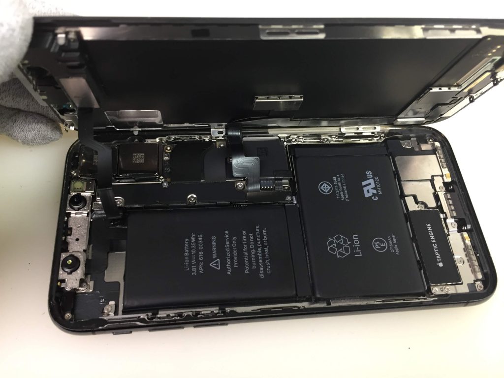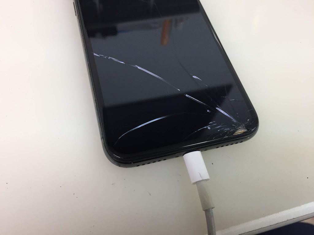 お持ち込み頂いた時の状態は、充電ケーブルを挿しこんでも全く反応しない状態で、再起動しても画面が表示されない状態でした。