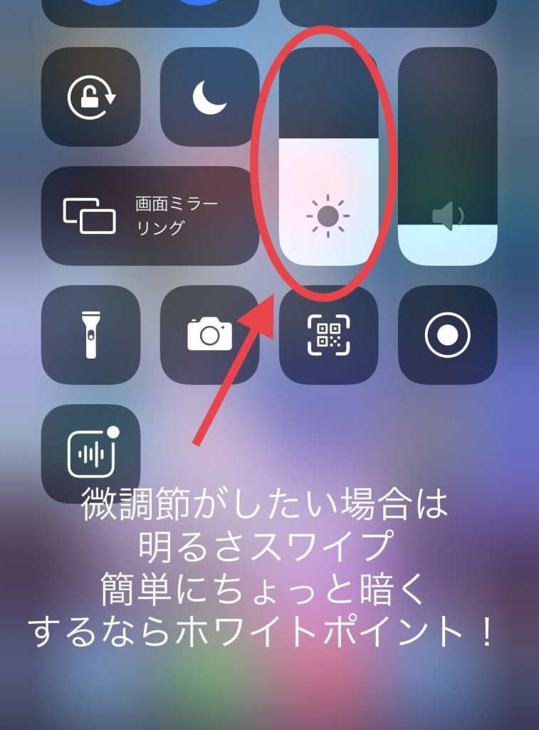 通常の明るさの調節とは異なり、再度ホワイトポイントを下げるを選択すると元の明るさに戻してくれるので