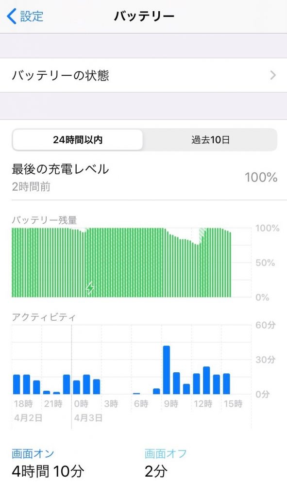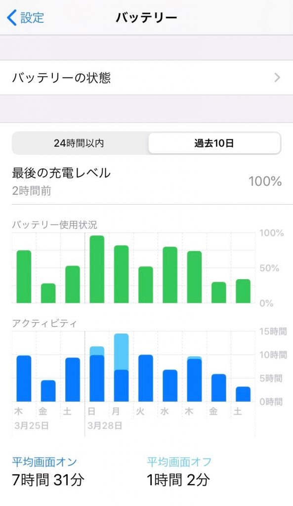 やり方はかんたん!確認の仕方は【設定】⇒【バッテリー】⇒【バッテリーの状態】から確認ができます。