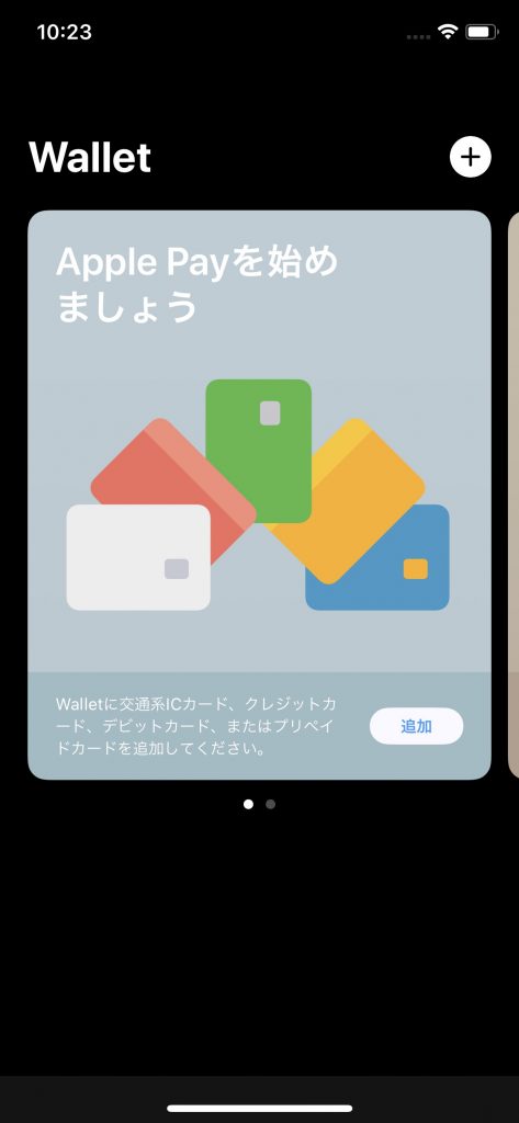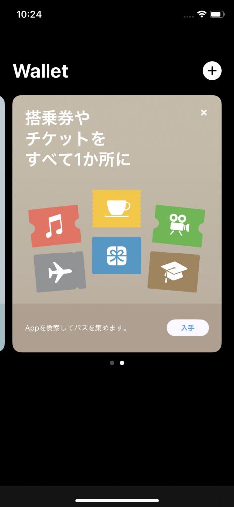 Walletを開いて一番最初の画面の右上の「+」をタップします。