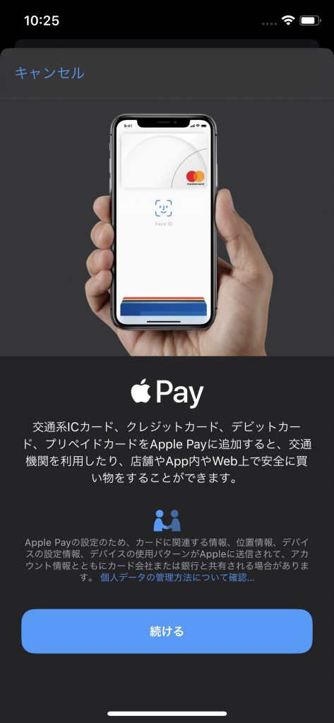 そうするとこの画面がでてきますので「続ける」をタップ。