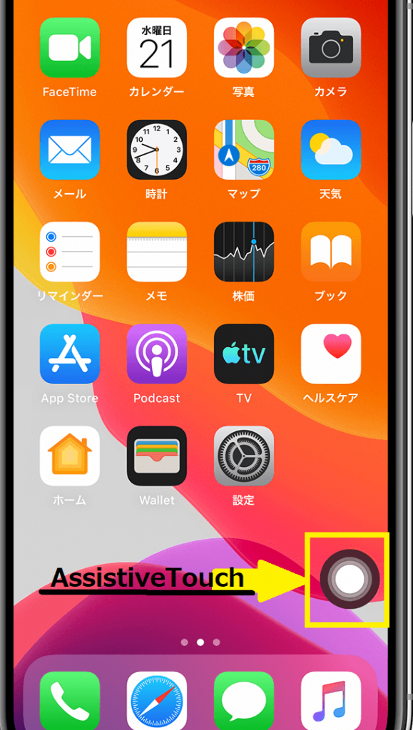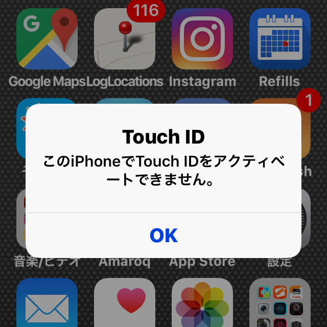 ホームボタンが使用できなくなった際は、上記のように「TouchIDがアクティベートできません」の表示が出たり、画面上に自動で疑似ホームボタン(AssistiveTouch)が出てきたりします。