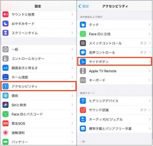 まず、設定アプリを開き→アクセシビリティ→サイドボタンを選択します。
