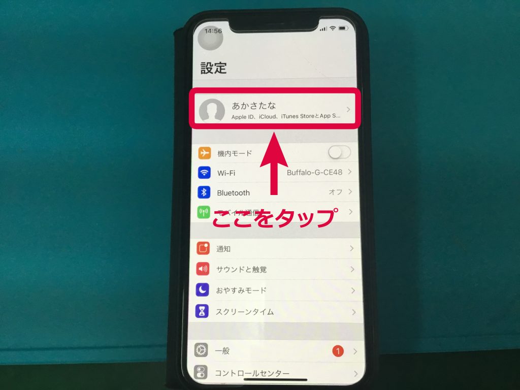 ・設定を開き、一番上の自分の名前(もしくはプロフィール)の部分をタップします。