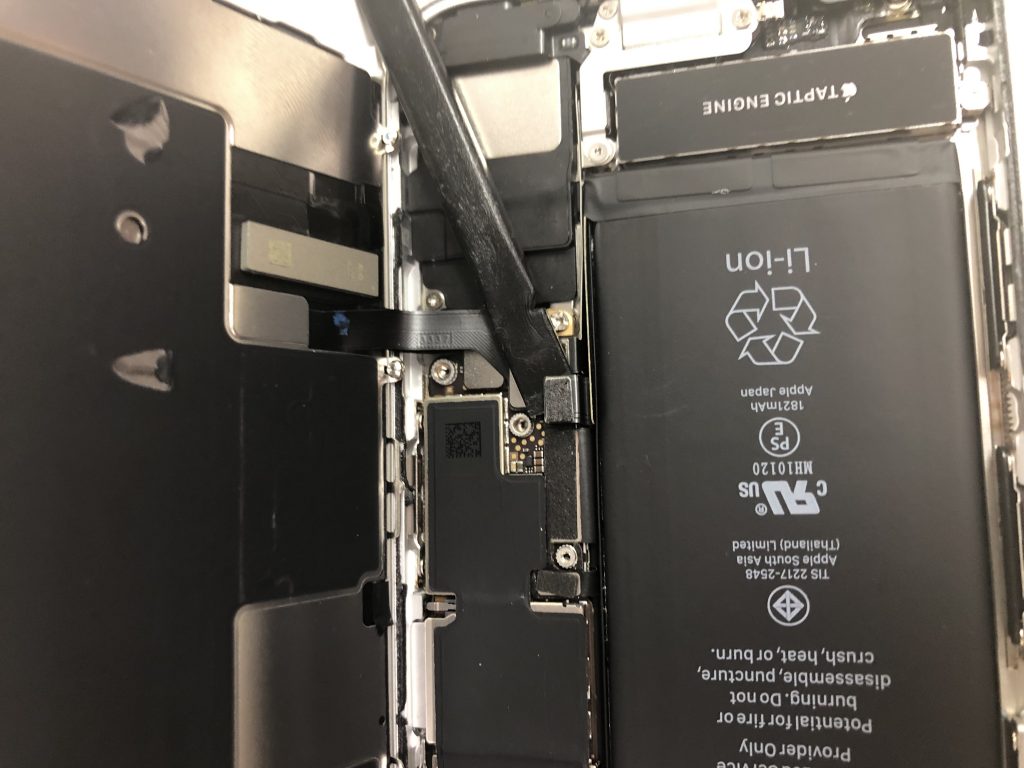 6や6sはアウトカメラ側にコネクタが付いておりますが、7からは右側に分かれてコネクタが付いています。引っ張ると切れてしまうのでパネルを開ける方向も間違わないようにしなくてはなりません。
