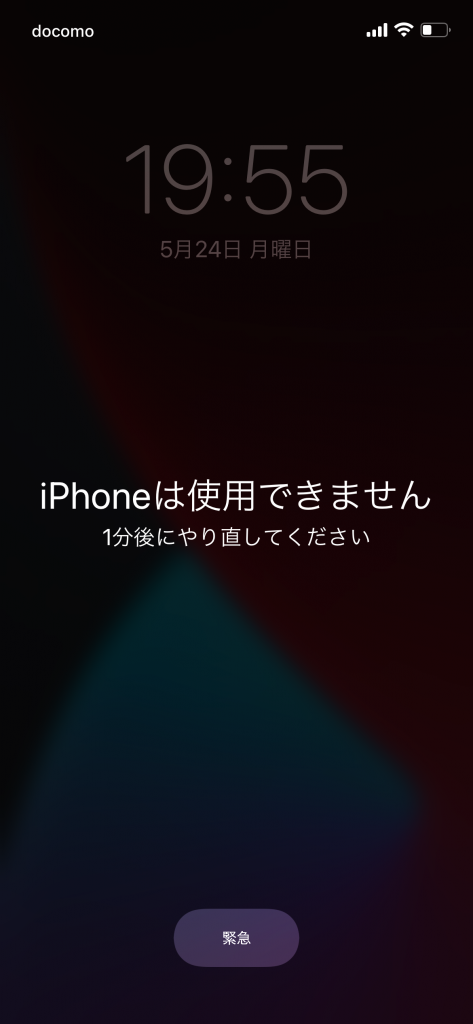●9~10回連続でパスコードを間違えると、60分間ロックされます。