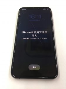 誤作動していたせいで「このiPhoneは使用できません」の状態で