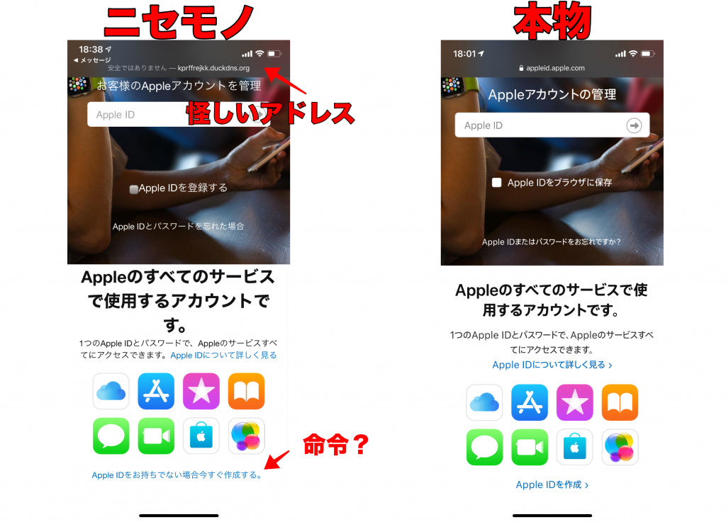 *これもログインしてしまうとAppleIDのパスワードが抜かれるので絶対やめましょう。