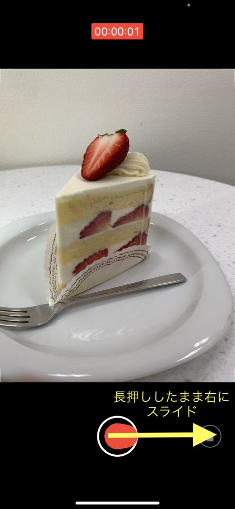 次にシャッターボタンを長押ししながら動画撮影を開始した後、指を離さず右にスライドします。