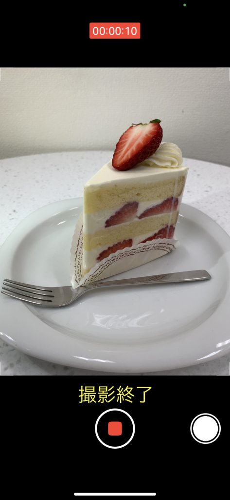 撮影を終了する場合、赤い部分をタップします。
