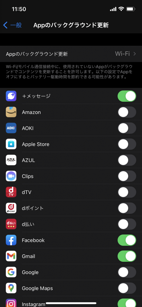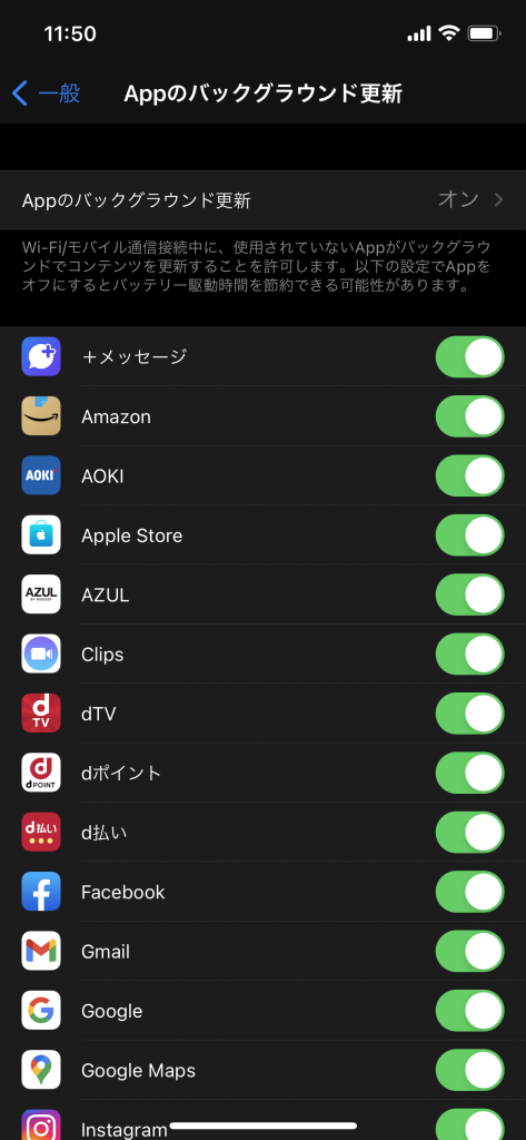 使用しないアプリのAppのバックグラウンド更新をOFFにするべし( ̄^ ̄)