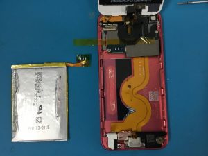 iPodのバッテリーはiPhoneとは異なり基盤にはんだ付けされている構造になります。