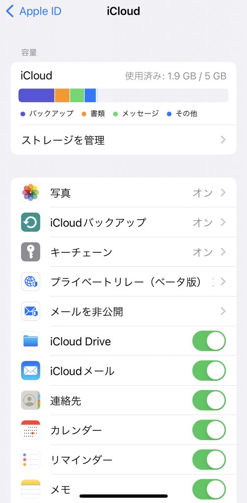 iCloudストレージ容量の増やし方はこのページの最後に記載しておきます。
