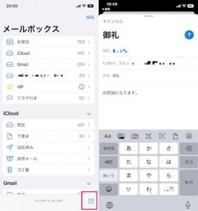 右下のマークをタップして新規メールを作成します。