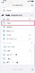 送信取り消ししたメールは「下書き」フォルダへ保存されます。