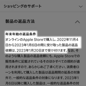 またクリスマス・ホリデーギフトシーズンに限っては通常14日以内の返品可能期間が長く設定されています。 これを機会にApple製品を購入していてはいかがでしょうか?