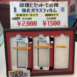 当店では、数種類のガラスフィルム取り扱いと