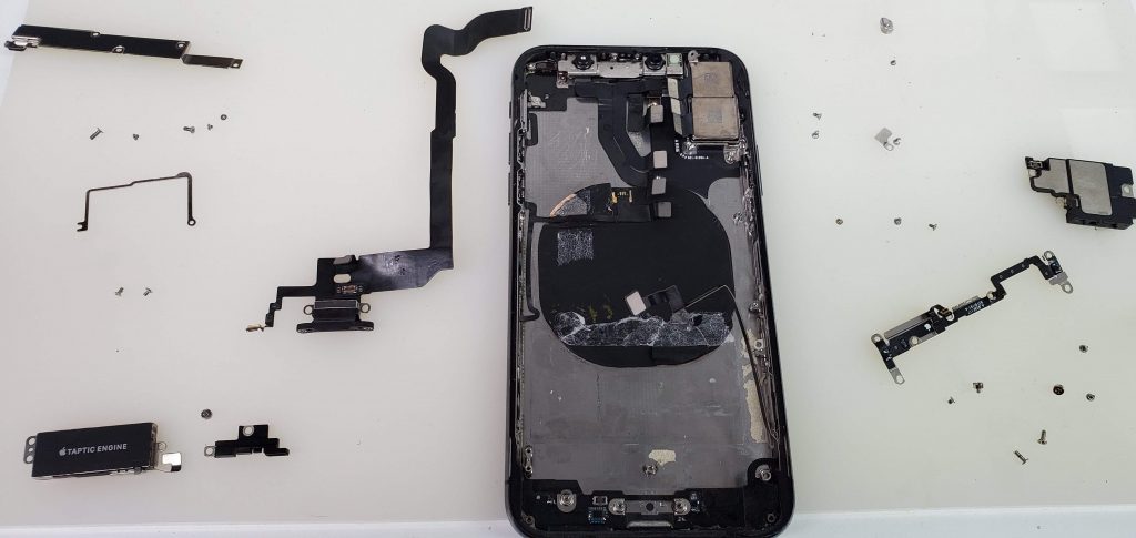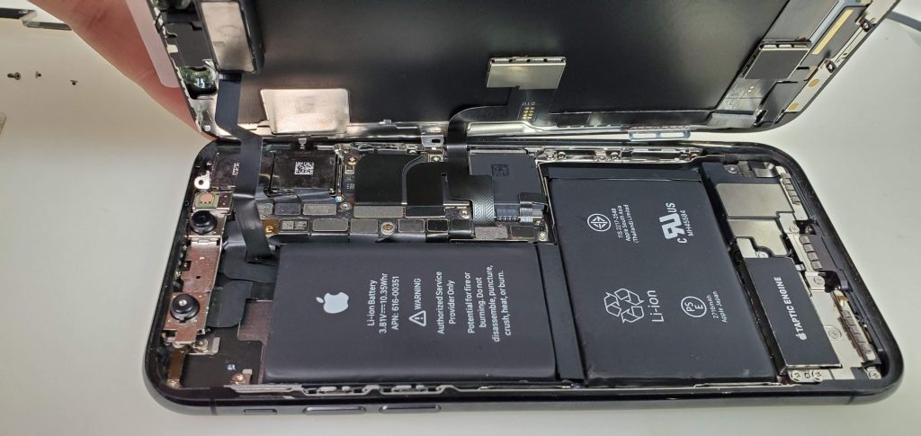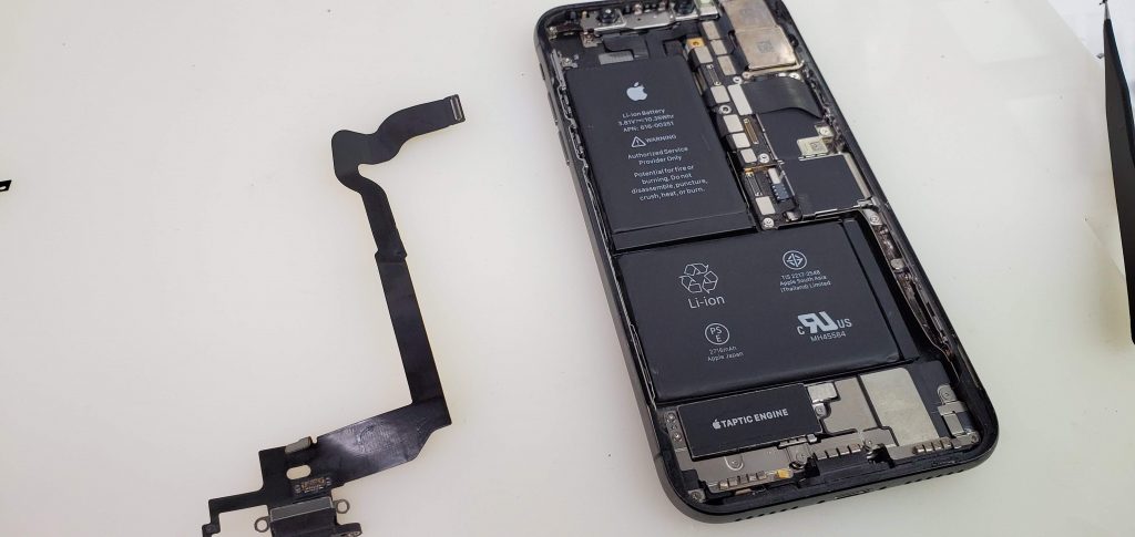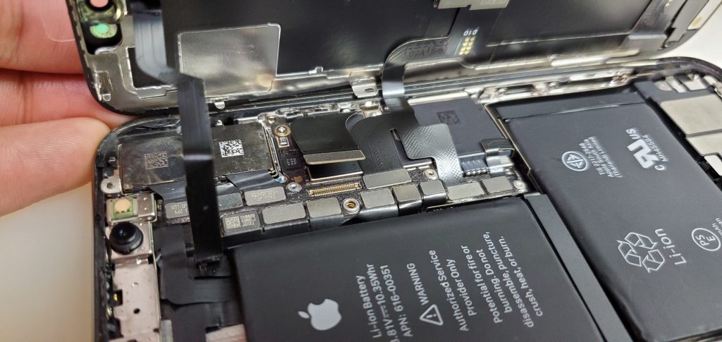 iPhoneXのライトニングはバッテリーと基盤を外さないと取り外せない構造になっています。