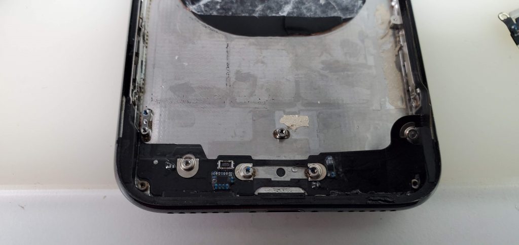 基盤・バッテリー・ライトニングコネクターを組み付け直した後の画像です。