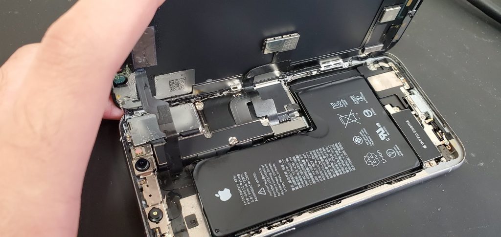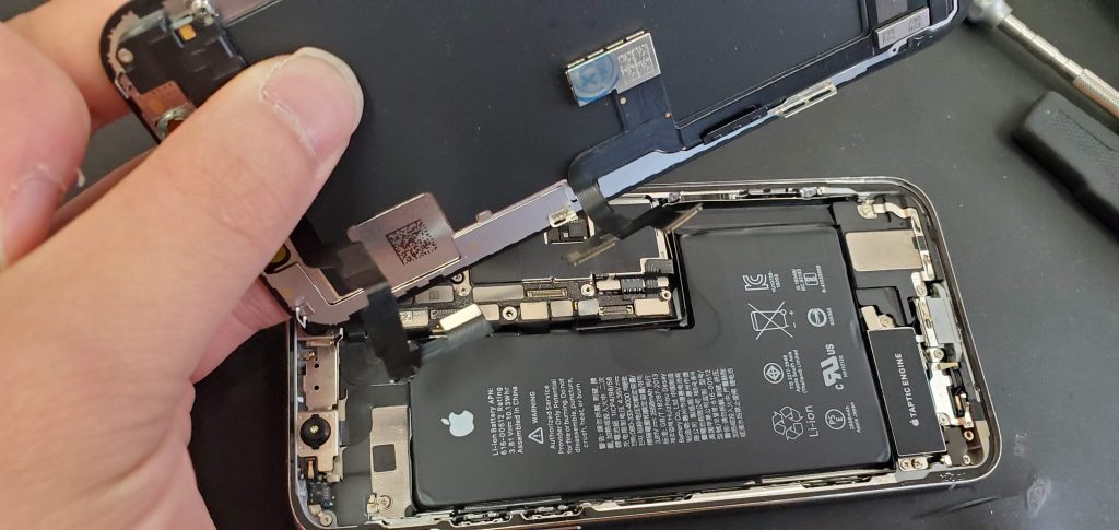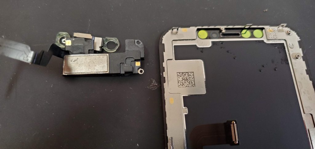 iPhone Xと同様に、iPhone Xsのも上部の近接&イヤースピーカーを移植するだけで組みつけ作業は完了です。