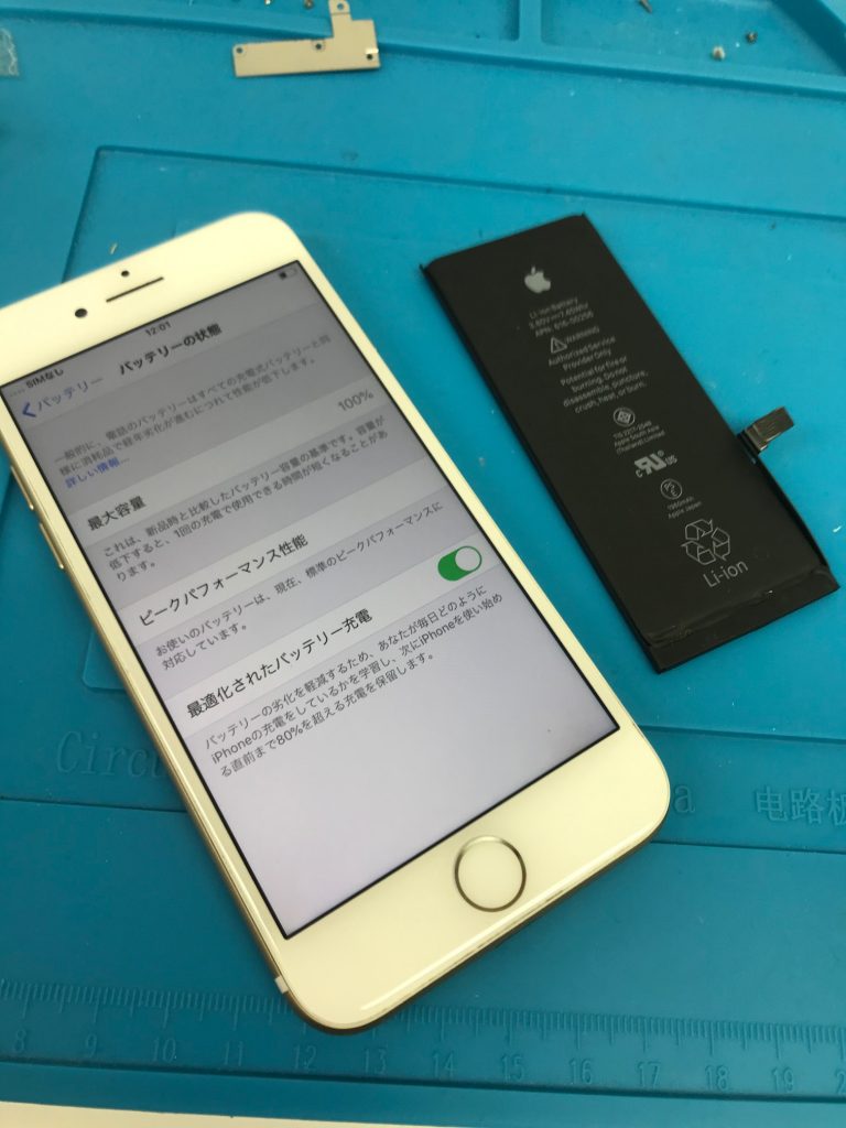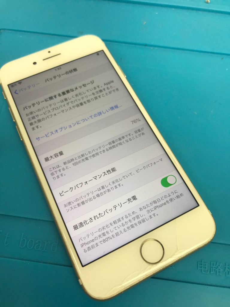 それでも少し気になってきたらこの部分をチェックすることで、はっきりとしたメッセージと数字で、劣化していることがはっきりとわかりますね。今回お預かりの機種iPhone7は、ここ最近バッテリー交換のご依頼が大変多くなっています。ご愛用の皆様、一度バッテリー状態を確認してみてはいかがでしょうか。