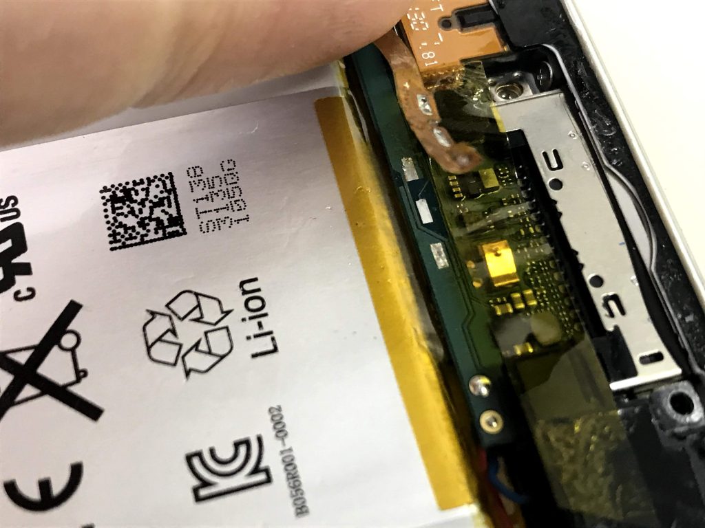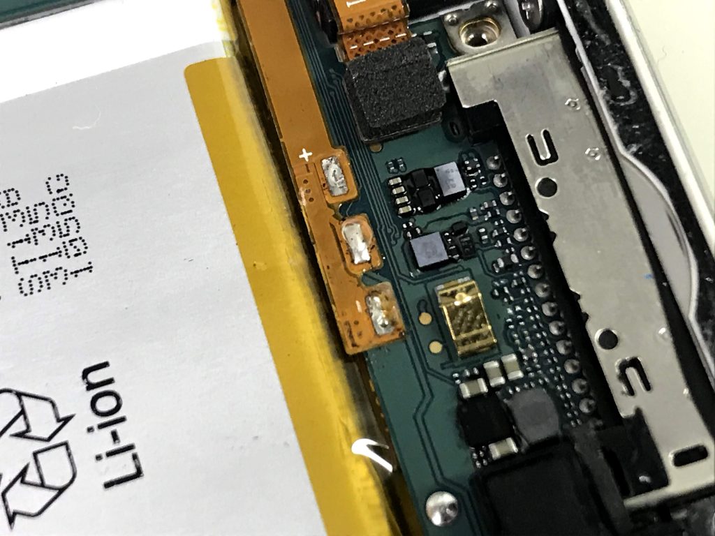 iPodtouch4のバッテリーも、iPodtouch5やtouch6と同じ様なに、「半田付け」で接着しています。