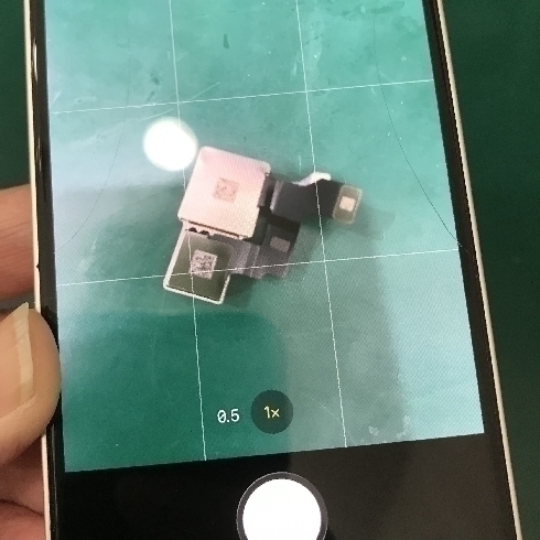 端末をお預かりさせて頂き、レンズを外して清掃してからカメラを起動してみると…超広角(x0.5)は綺麗に映りますが広角(x1)カメラは壊れているようで白くブレていてオートフォーカスも効かない状態です。
