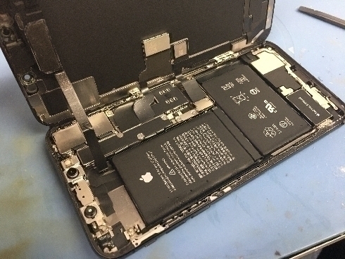 端末をお預かりさせていただき、画面を開け、古いバッテリーを取り外して新しいものと入れ替えて起動…充電の溜まり具合減り具合端末の挙動などを確認して問題がなかったため画面を閉じて作業完了です!