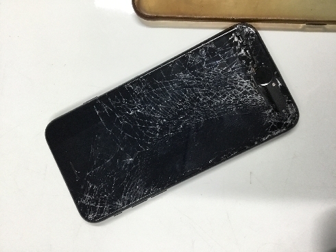 外で落としてしまい画面下部が割れており、真っ暗の状態です。