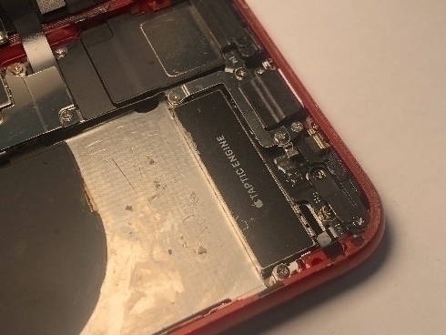 端末をお預かりさせていただき、画面を開けてみると…内部水没の痕跡がはっきりと出ています。
