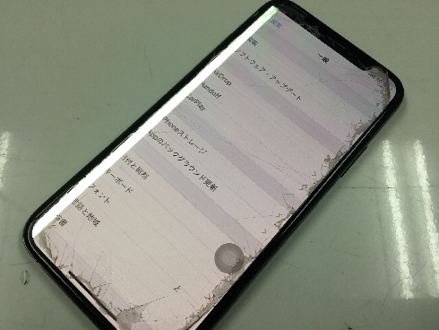 iPhoneXは液晶の強度が他のiPhoneに比べて比較的液晶の強度が低いため液晶まで破損しやすい端末になります。