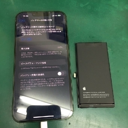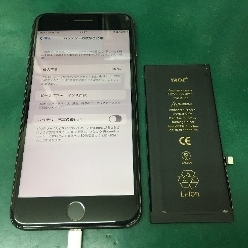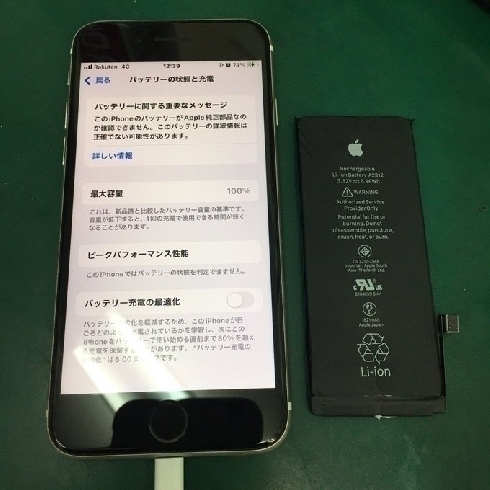 最大容量が低下し減りが早いとのことでしたが交換後は100%になりました☆