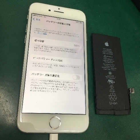最大容量が61%まで低下しすぐに充電なくなるとのことでしたが交換後は100%になりました