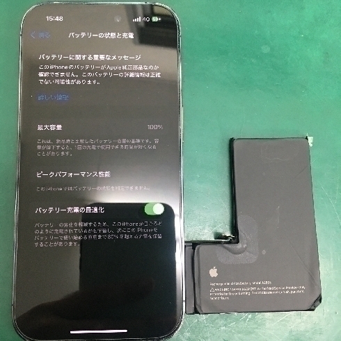 最大容量74%まで劣化しており、すぐに電池がなくなるとのことでした。