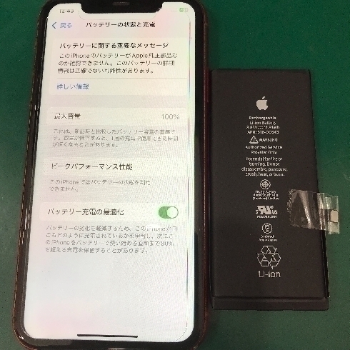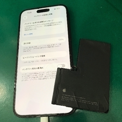 最大容量50%まで劣化しており、充電しながらでないと使えないとのことでした!