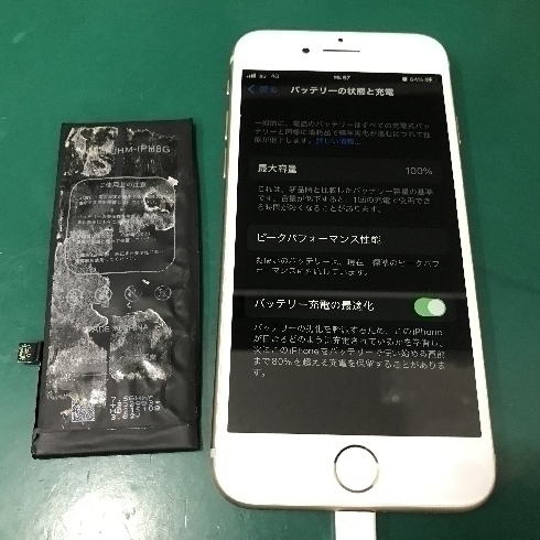 どちらもバッテリー劣化メッセージが出ていて減りが早いとのことでしたが交換後は無事に100%になりました!
