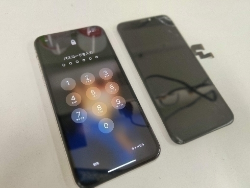 動作の確認が事前にできないため、修理箇所以外の故障は保証できないことを説明し液晶修理にとりかかります。