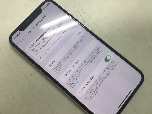 こちらのiPhoneXも故障なくバッテリーの充電できる量が減ってしまっていただけだったためバッテリー交換へ。