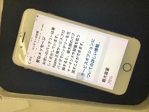 中古で購入された端末だそうでバッテリー最大容量が76%まで低下していました。