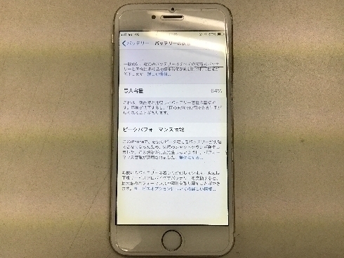 iPhoneの設定上から確認しましたが「最大容量」が60%代まで落ち込んでいました。