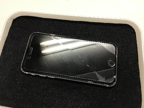 初めて落として画面が割れてしまったということで、画面修理をご依頼いただきました。修理後、強化ガラスも貼らせていただき、ほかの部分も動作チェックして問題なければお渡しして修理完了です。お渡し後は、お客様にも実際に新しい画面の操作感などをしっかりチェックしていただきます。