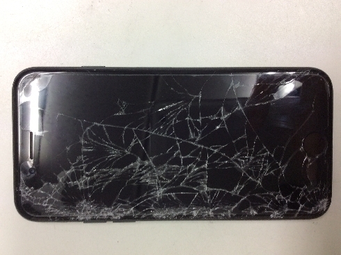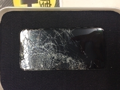 ガラスはクモの巣状に割れており液晶も一部映っていない状態でした。